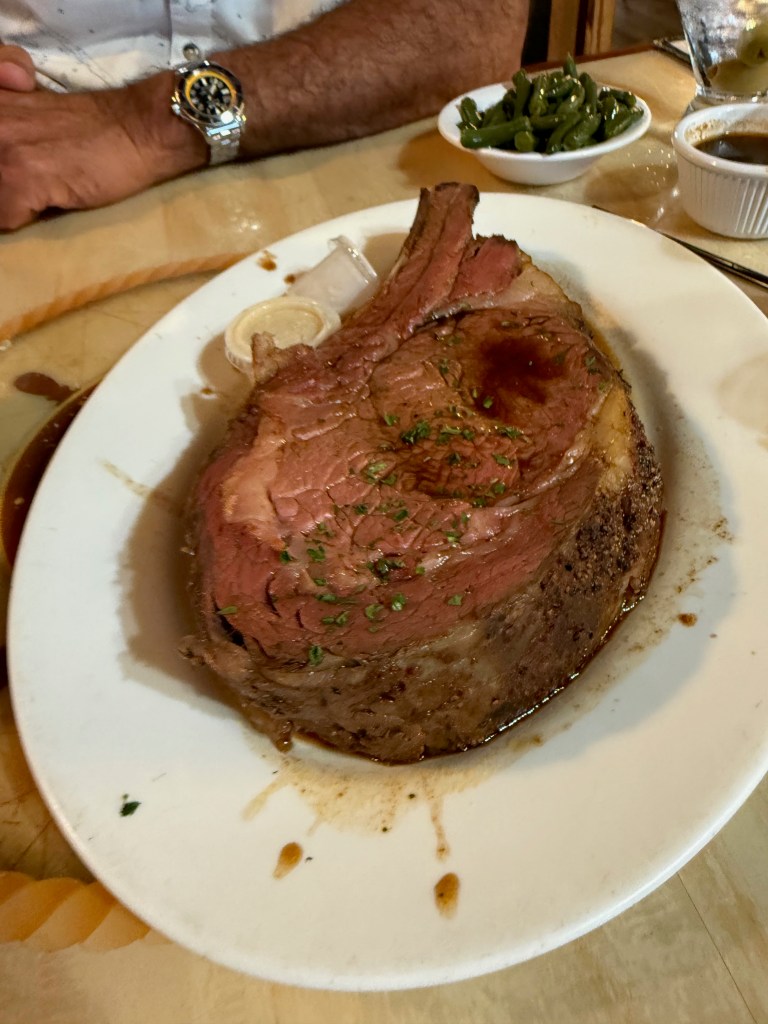 So how was the famous Coinjock prime rib! Well first we had to try a cup of crab bisque…as Carl says, we are in “Crab country!” Certainly for prime rib lovers, the prime rib it did not disappoint. It was definitely a bit overwhelming to see such a large slab of meat arrive to the table, but we did a good job with it (not proud of that..but all who are boaters know how hungry you get after a day on the water…if you ski or skimobile you can relate). A simple baked potato and veggie on the side were perfect, the meat was king!…For those of you who are again familiar with Lake Winnipesaukee it is reminiscent of getting the “King Stuffed Lobster” at the now closed Sandy Point restaurant. Same modest mom and pop vibe. It was a once a year pilgrimage to just eat that lobster and who cared what it came with! Apparently though, Coinjock was sold to a more coporate entity a couple of years ago. My understanding from speaking with one of the employees is that they did not play with the menu and most of the changes were in the running of the back end of the business. Of course I got a mandatory Coinjock T shirt (went with the XXX and am wearing now as night shirt while I type!). I was sitting at the table with Carl and I could not stop saying just how much I love boating, and especially as we have been able to do on this trip. I do not for a minute take for granted this opportunity and the hard work (especially on Carl’s part) that has afforded us to do this. We have met just so many great people, have had the opportunity to see cities and towns from many different perspectives and not always on the beaten path. I had a smile from ear to ear throughout my time at Coinjock.